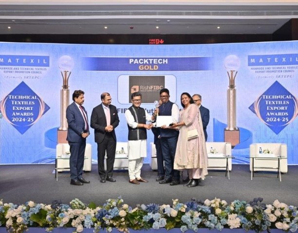 We are proud to share that Rishi FIBC has been awarded MATEXIL’s Export Award for outstanding export performance in Technical Textiles. We received the Gold Trophy in the Packtech category for FY 2023–24 and FY 2024–25.